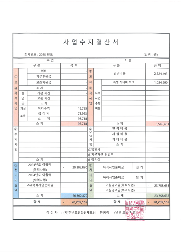 | 제목 | 25년 사업수지 결산서 | 작성일 | 2026-04-20 14:16 |